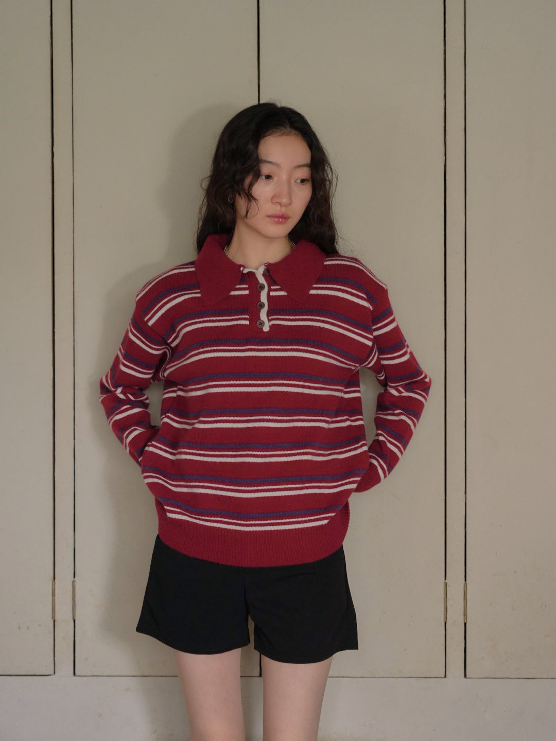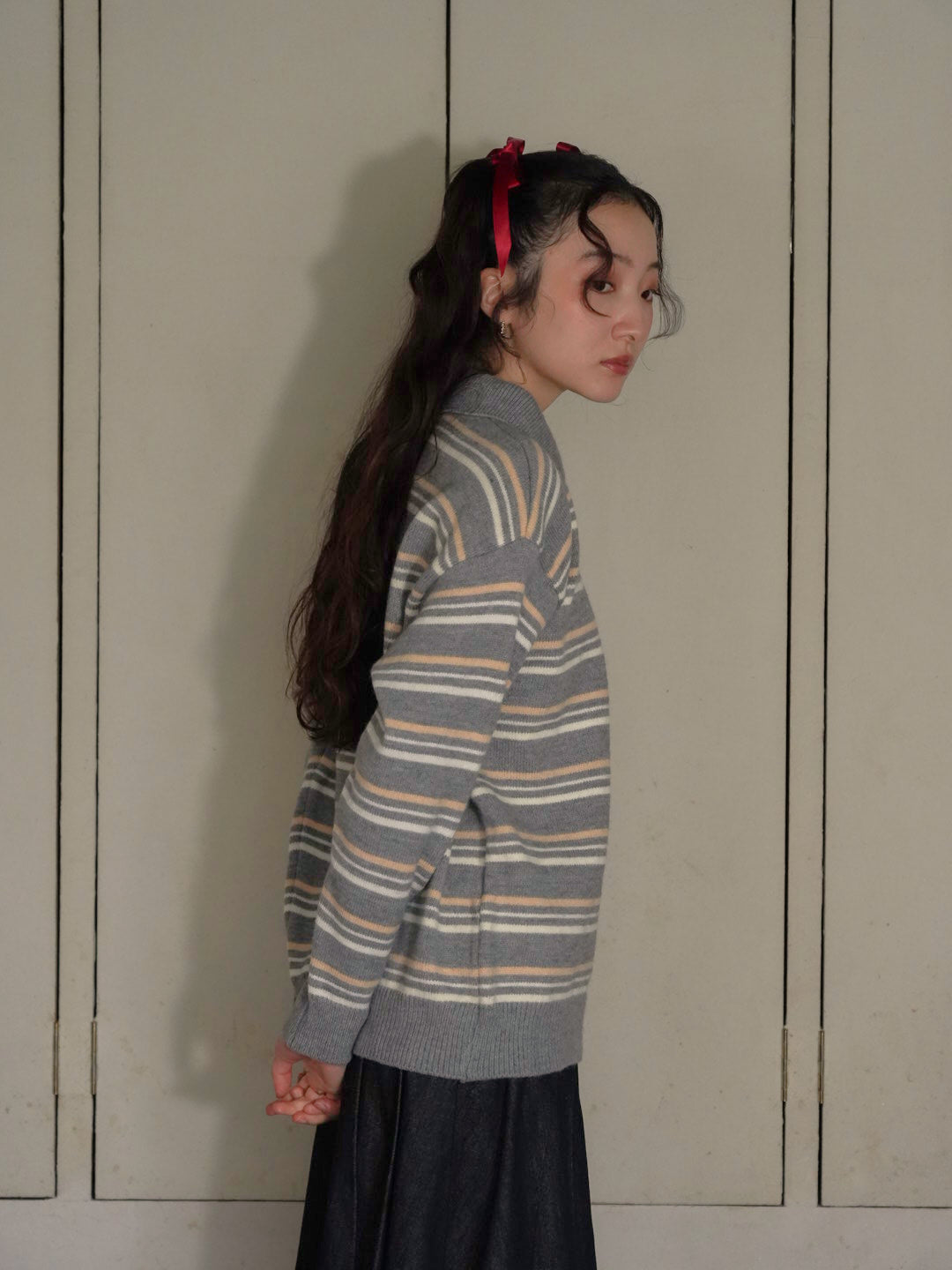 ヴィンテージムード漂うストライプデザインが印象的なニットプルオーバー。