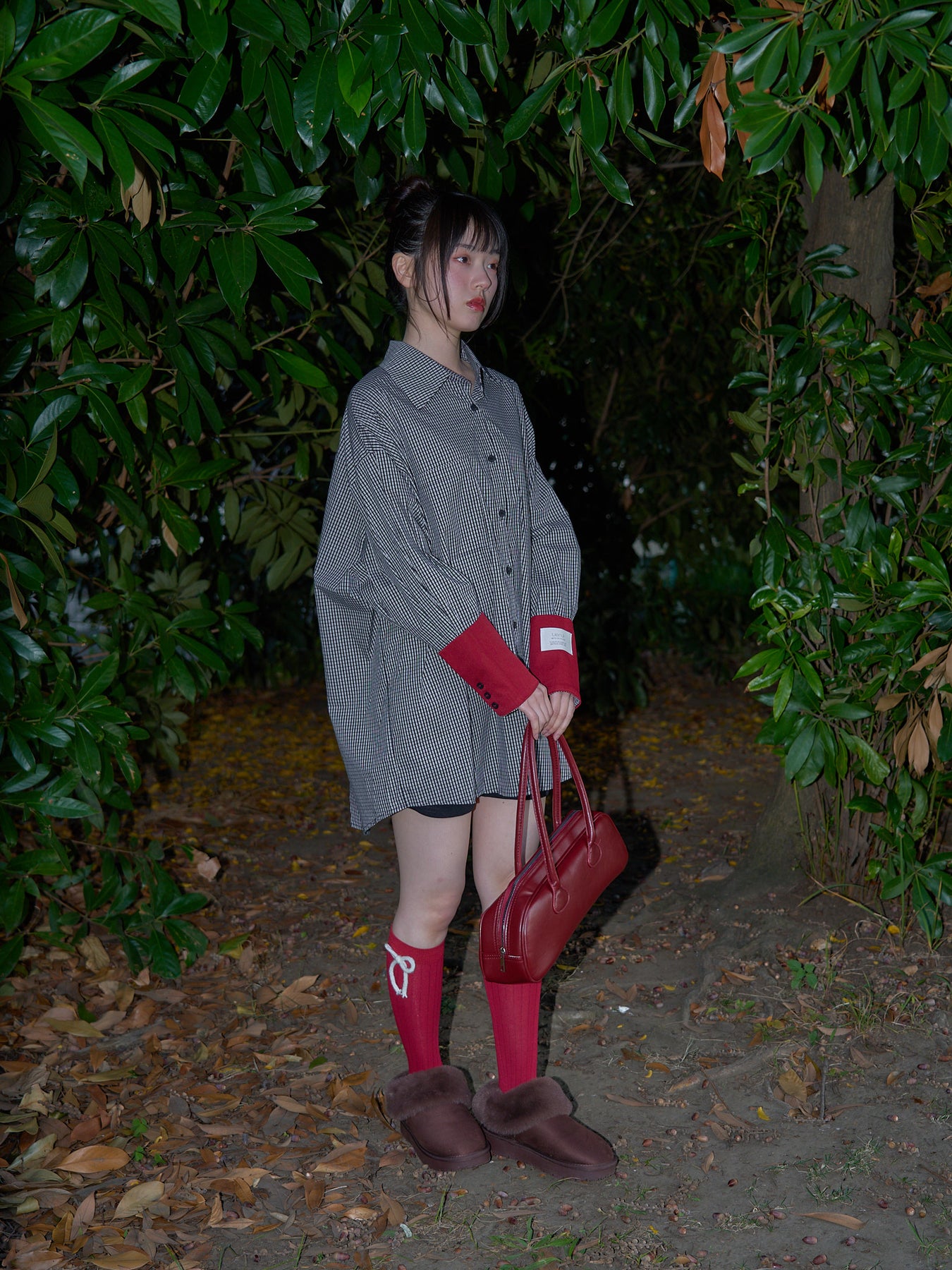 シンプルなリブソックスに、赤いリボンをあしらったガーリーなハイソックス。