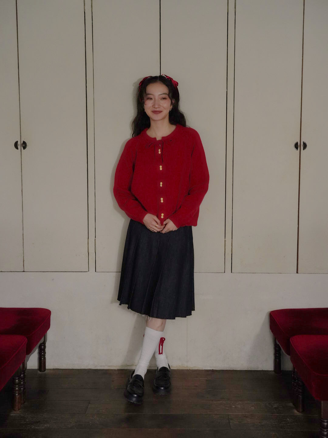 アクセントになったニットカーディガン。