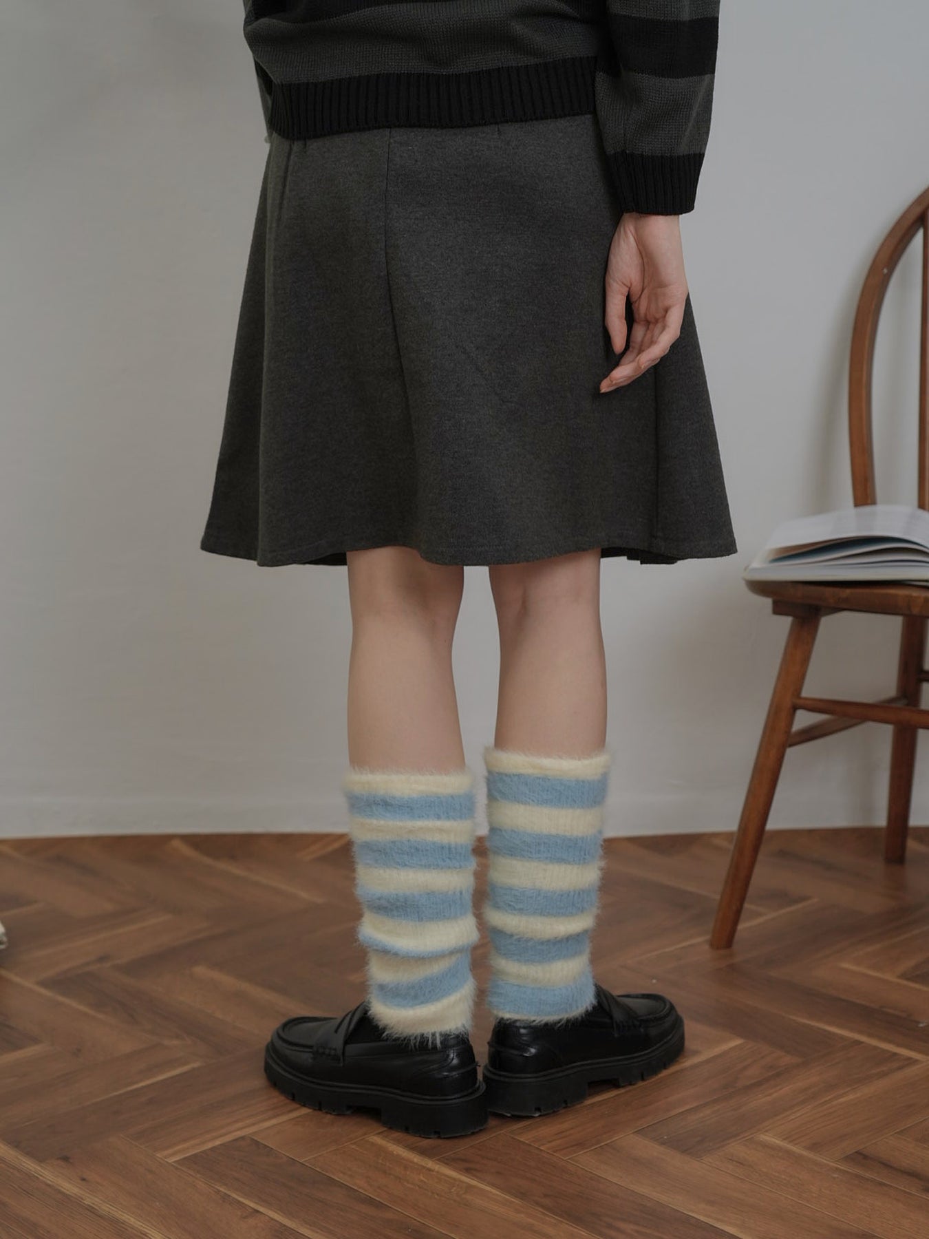 存在感のあるボーダーレッグウォーマー。