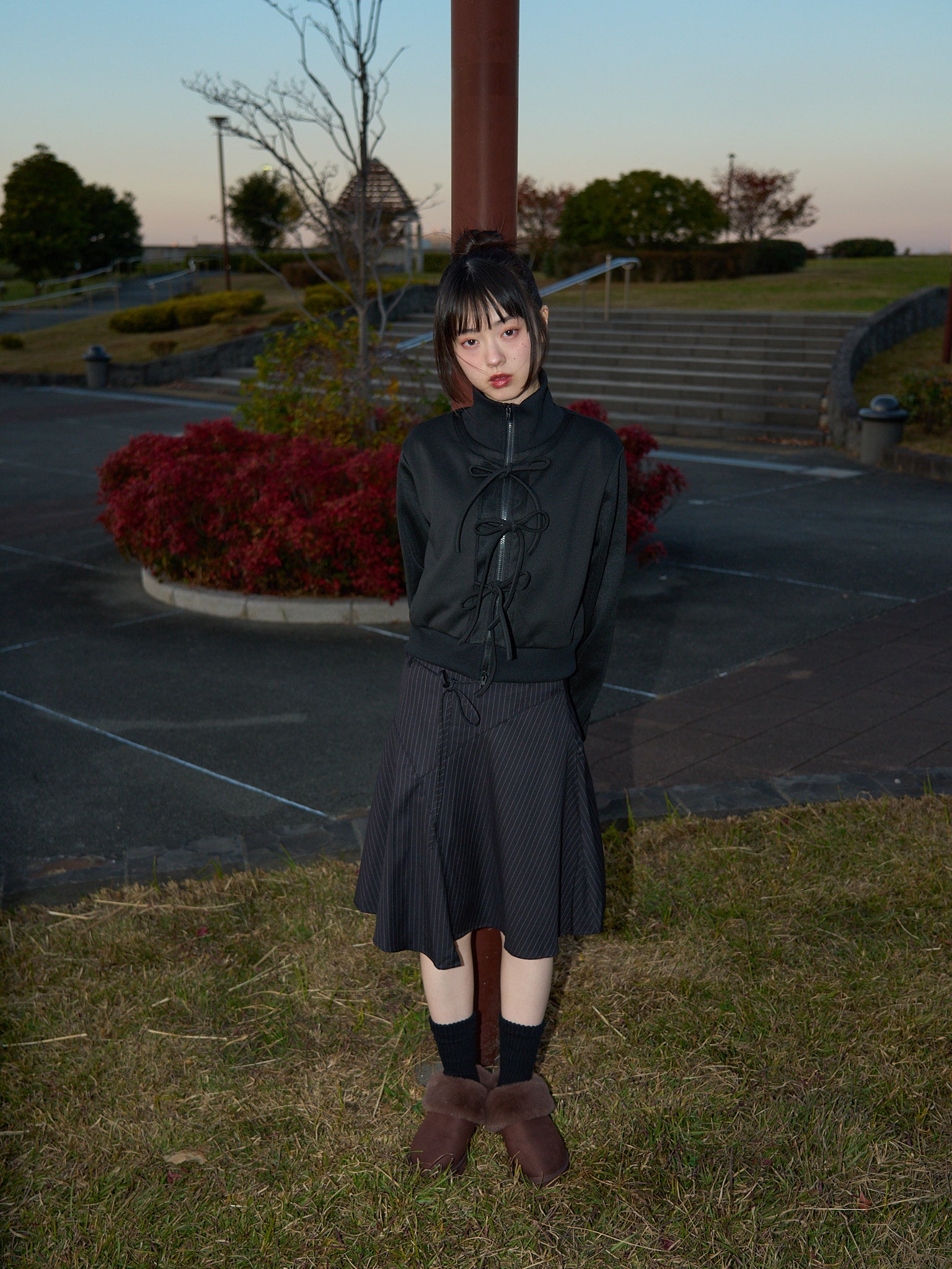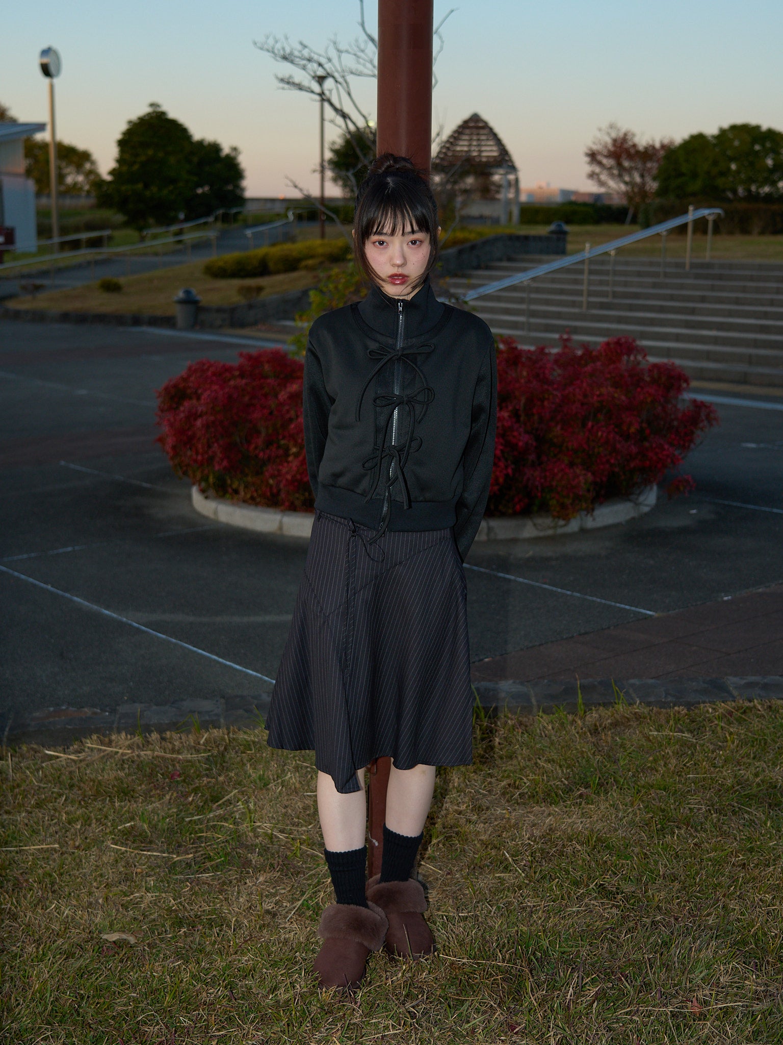 柔らかなAラインシルエットが自然な揺れ感を生み、女性らしさを演出します。