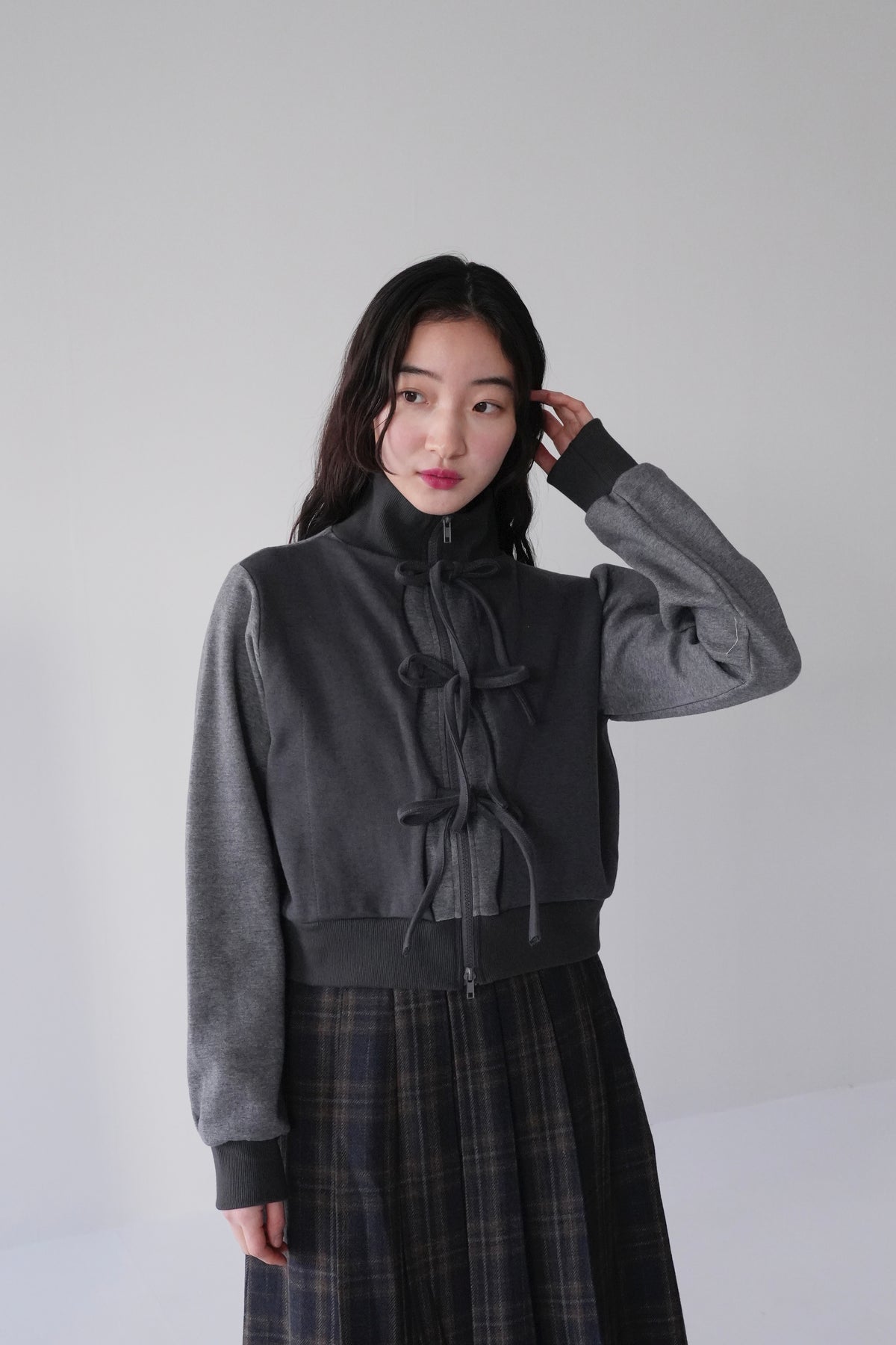 ハイネックジップパーカー。