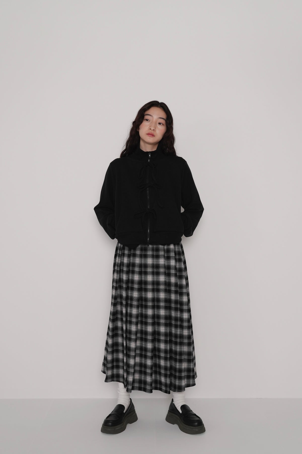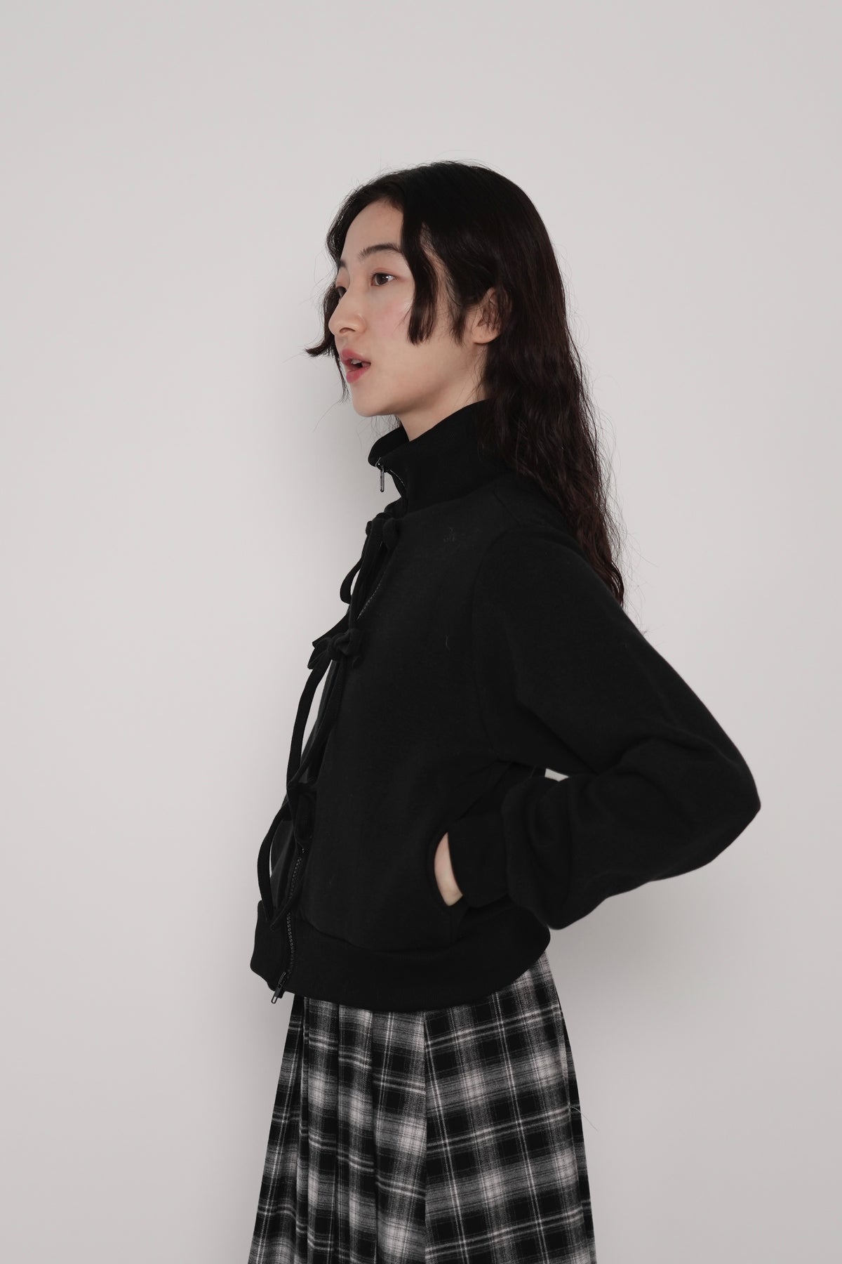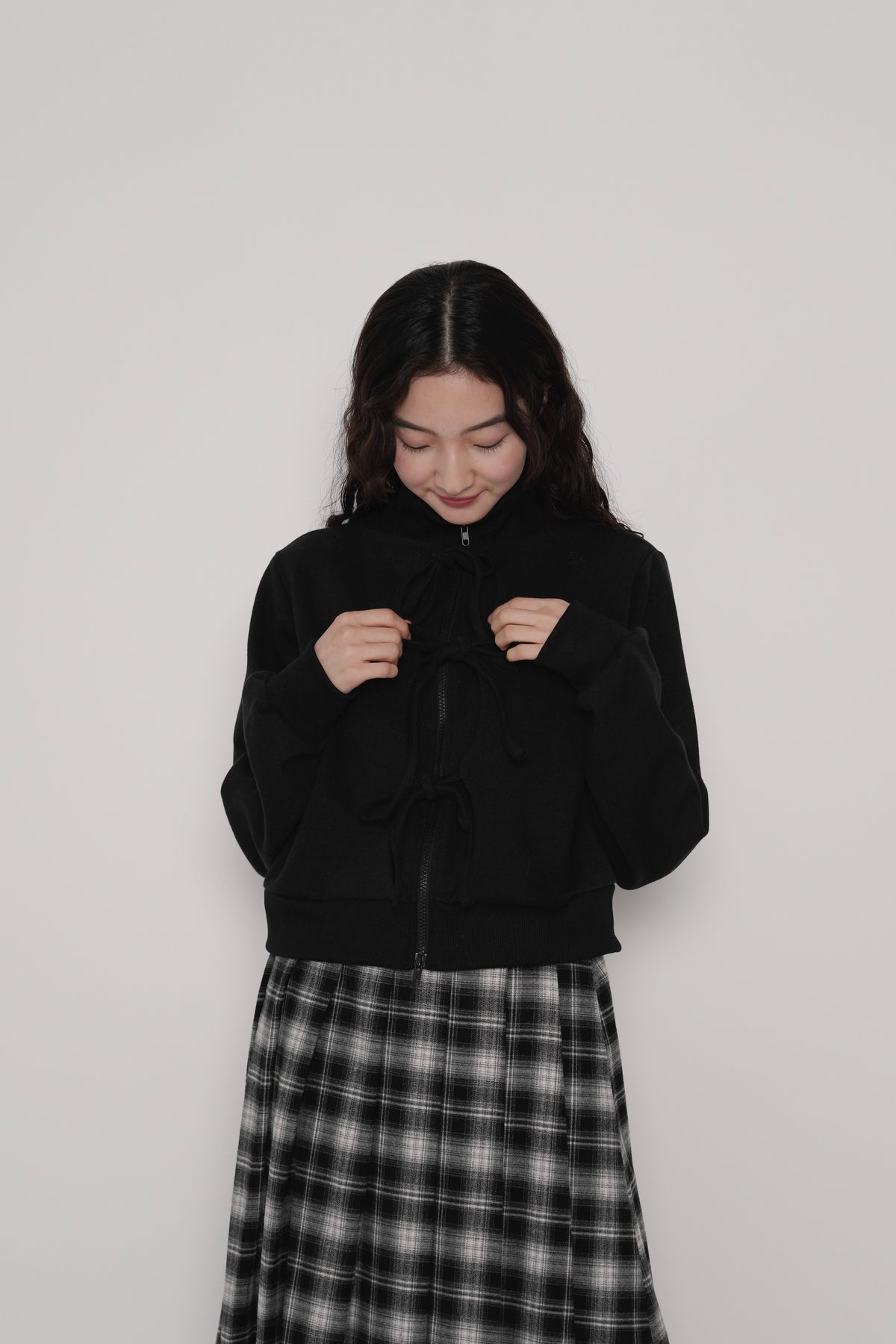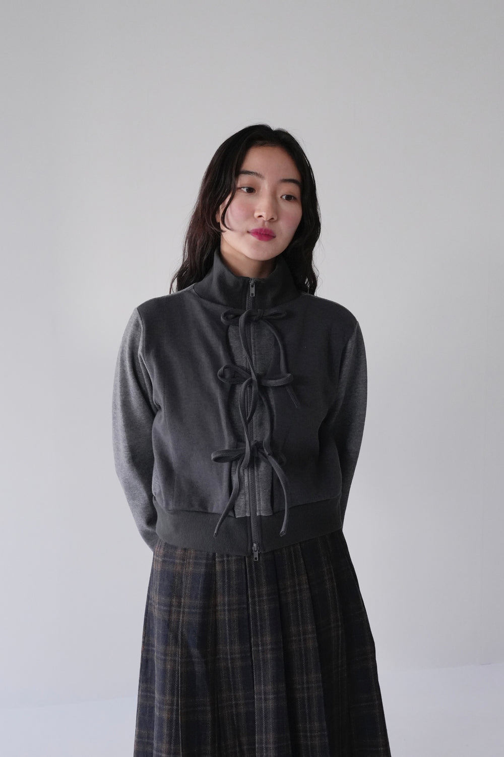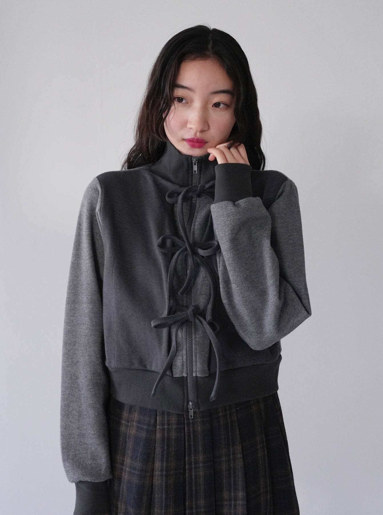 front ribbon zip parka