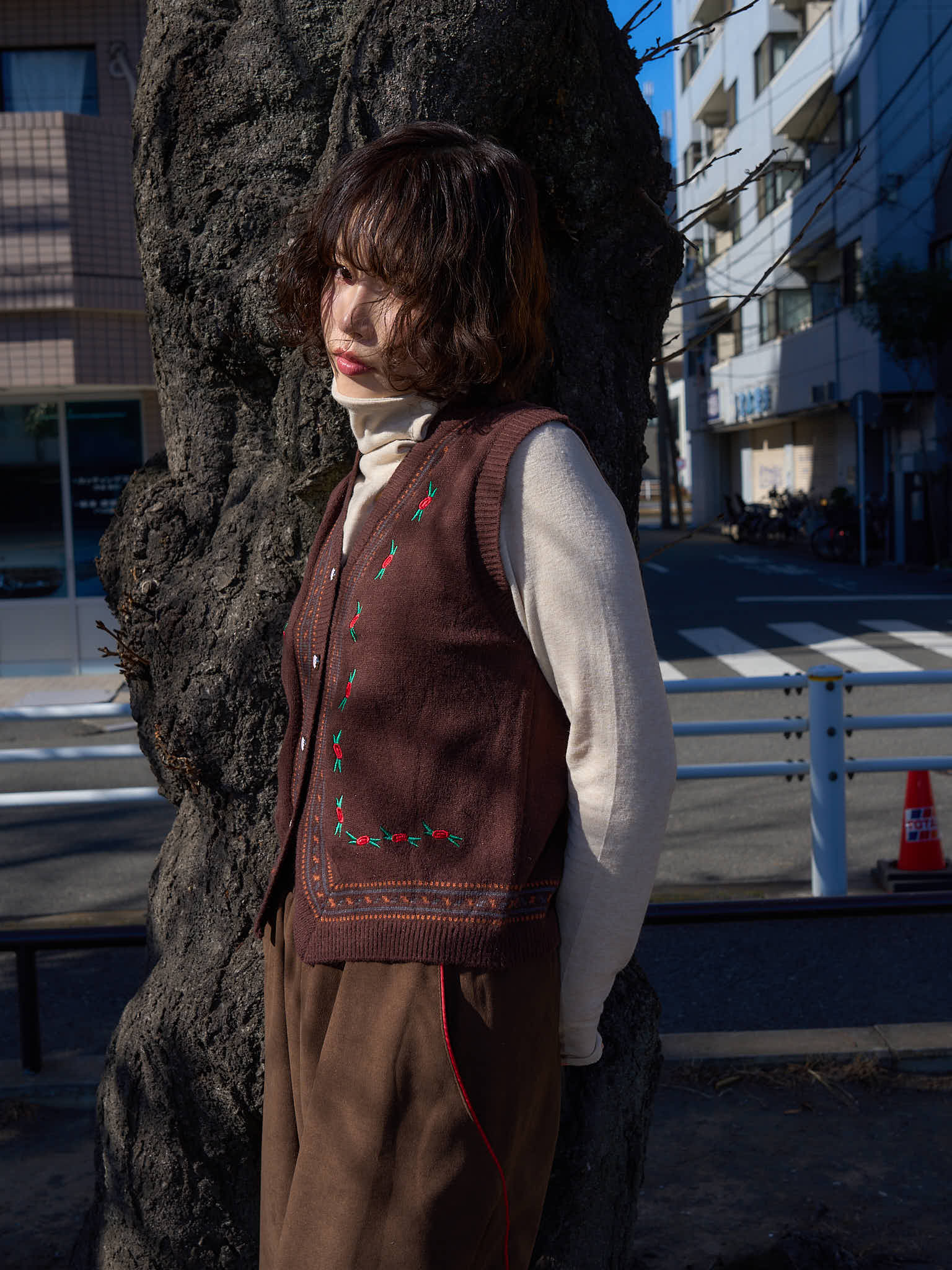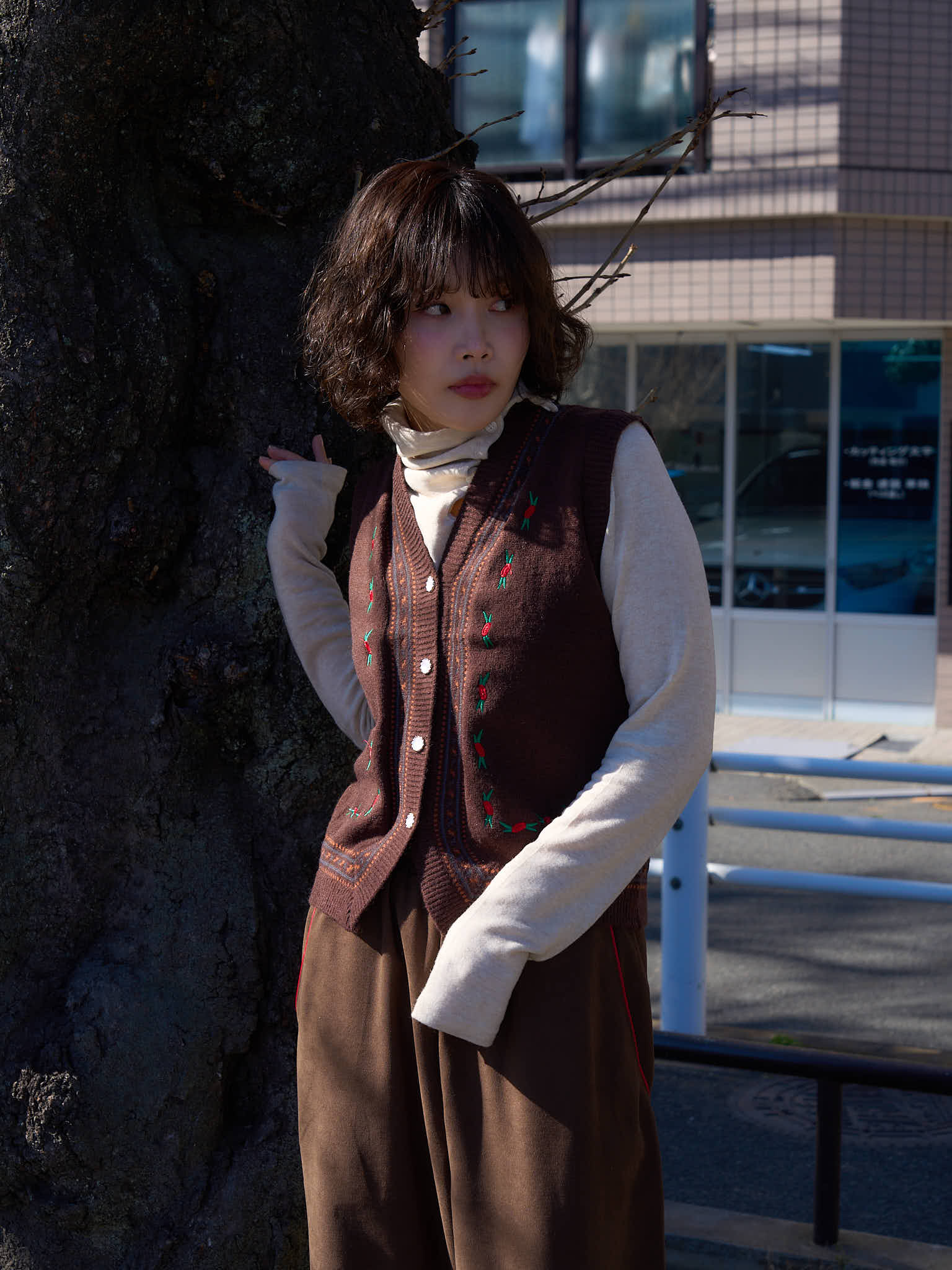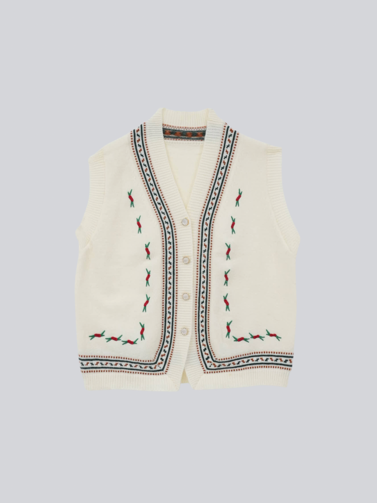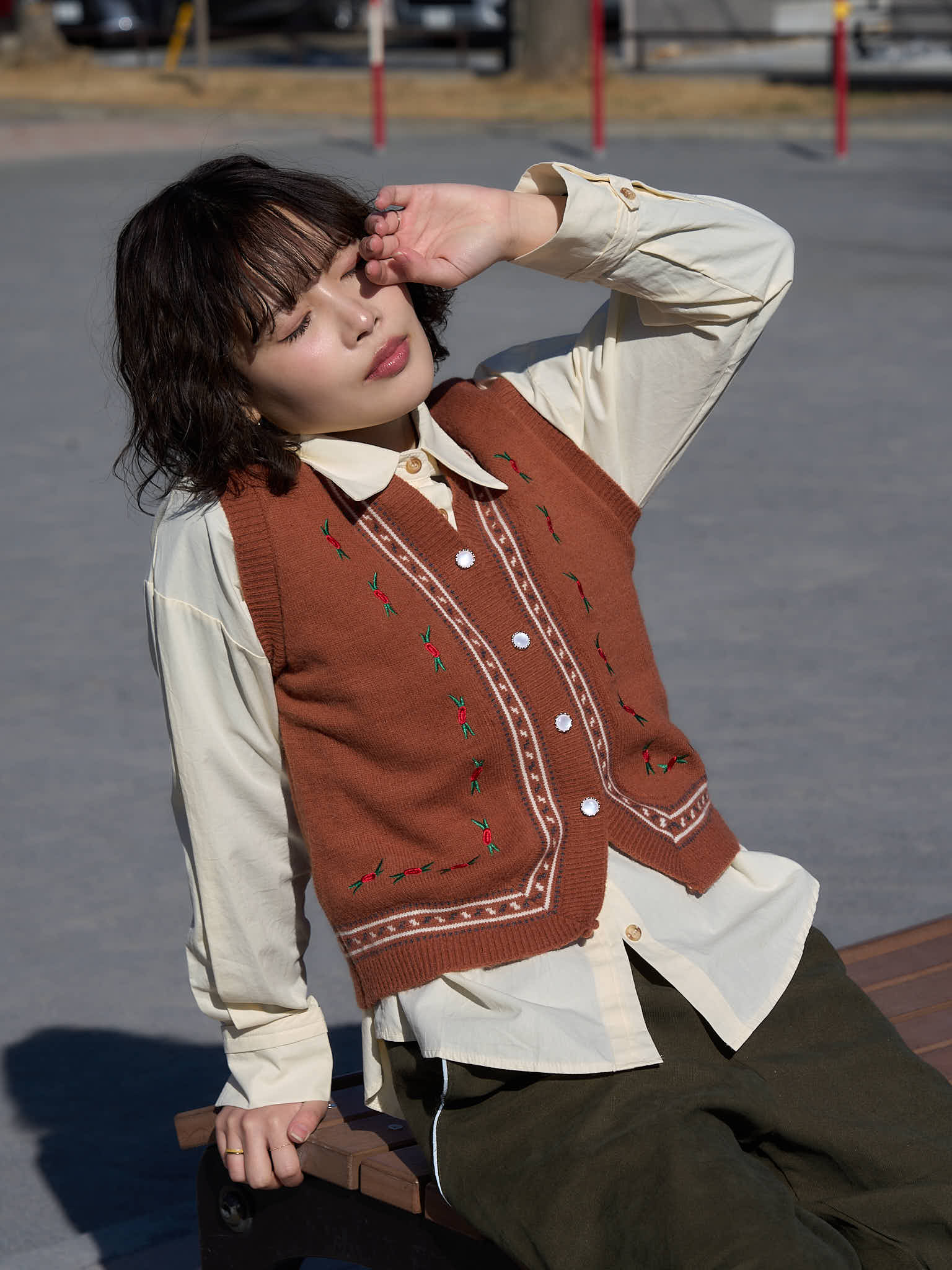 フレンチレトロな雰囲気漂う刺繍入りニットベスト。