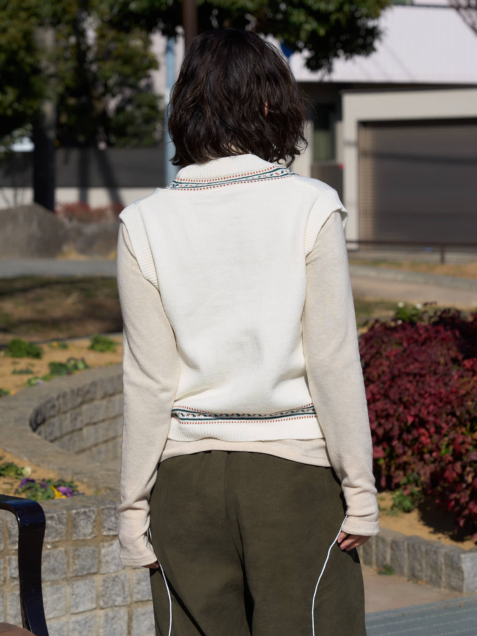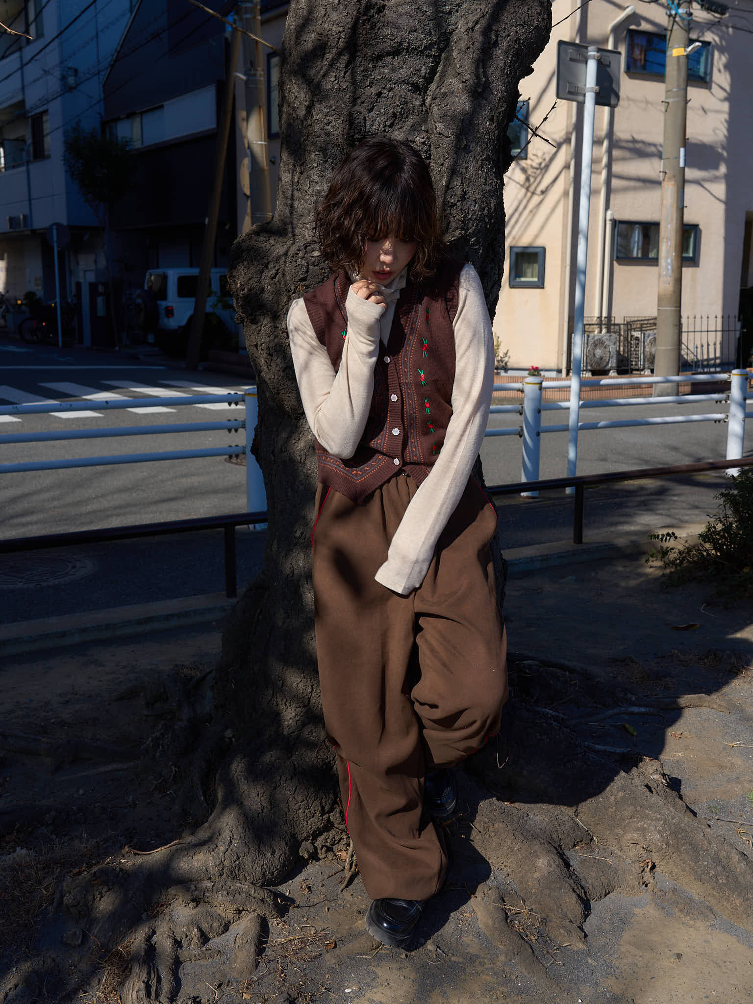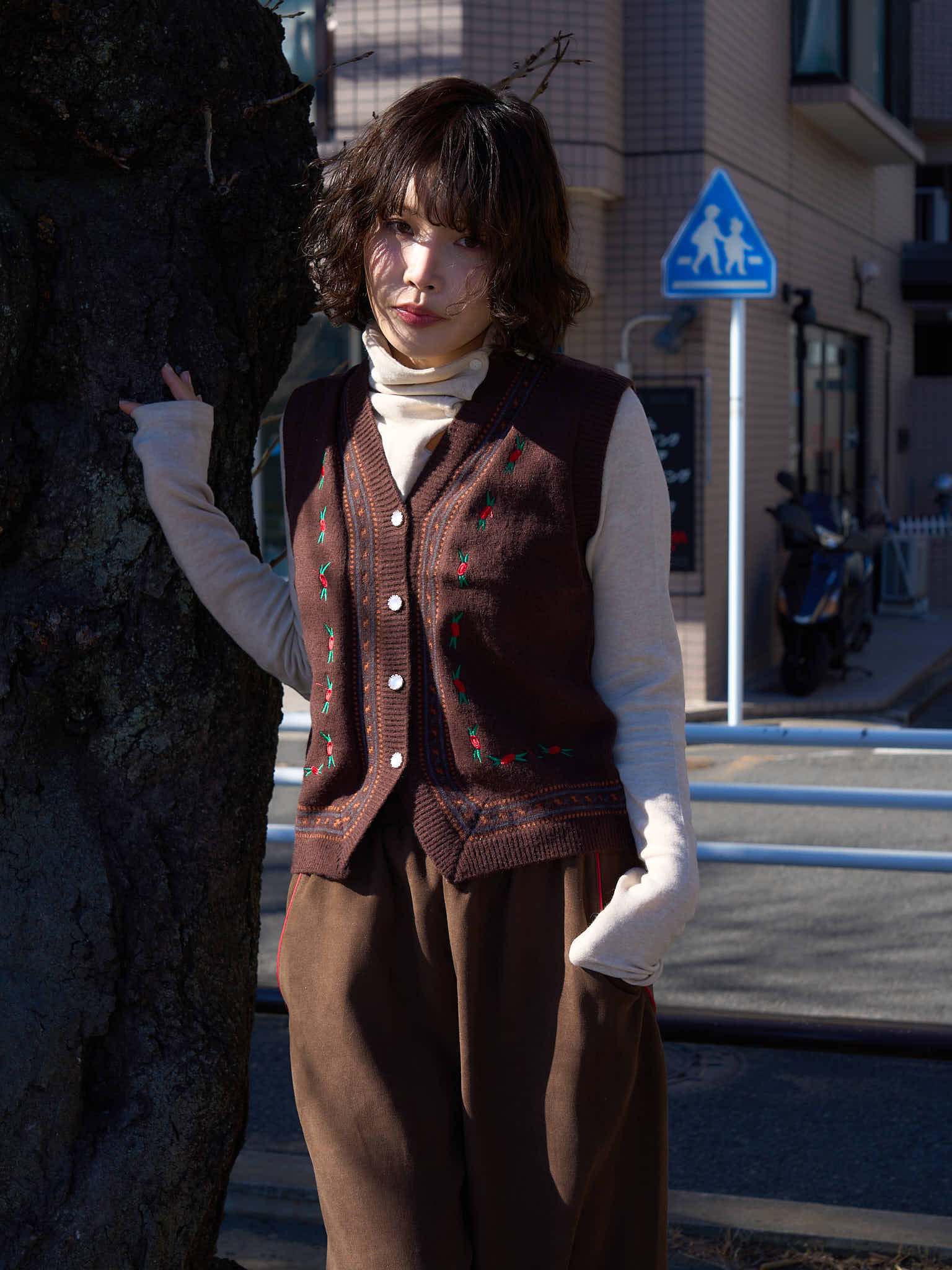 フレンチレトロな雰囲気漂う刺繍入りニットベスト。