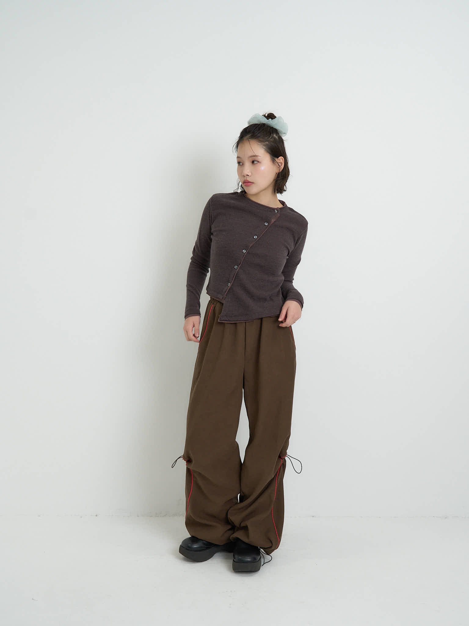asymmetric button rib cardigan