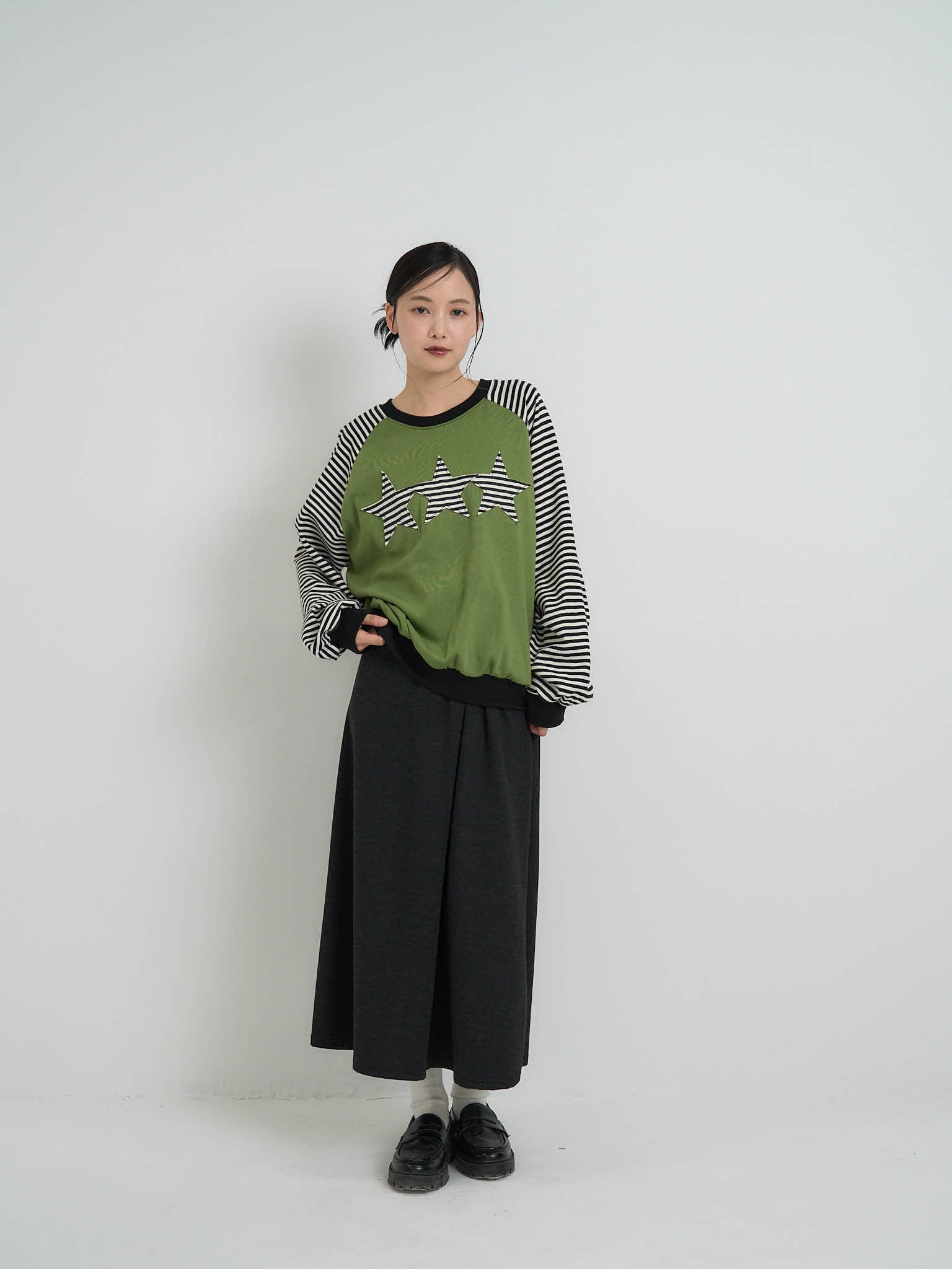 目を惹く韓国風スウェット。