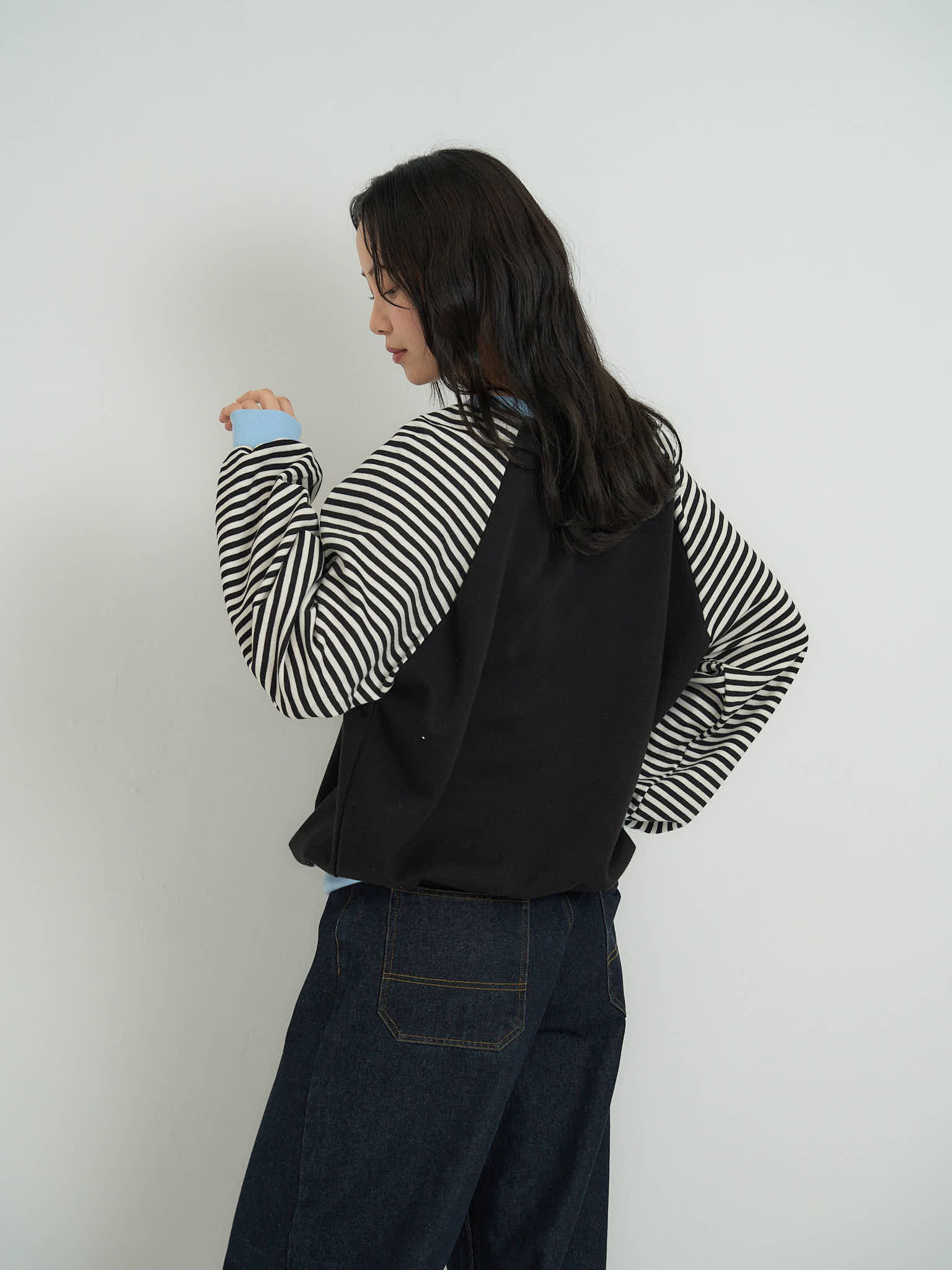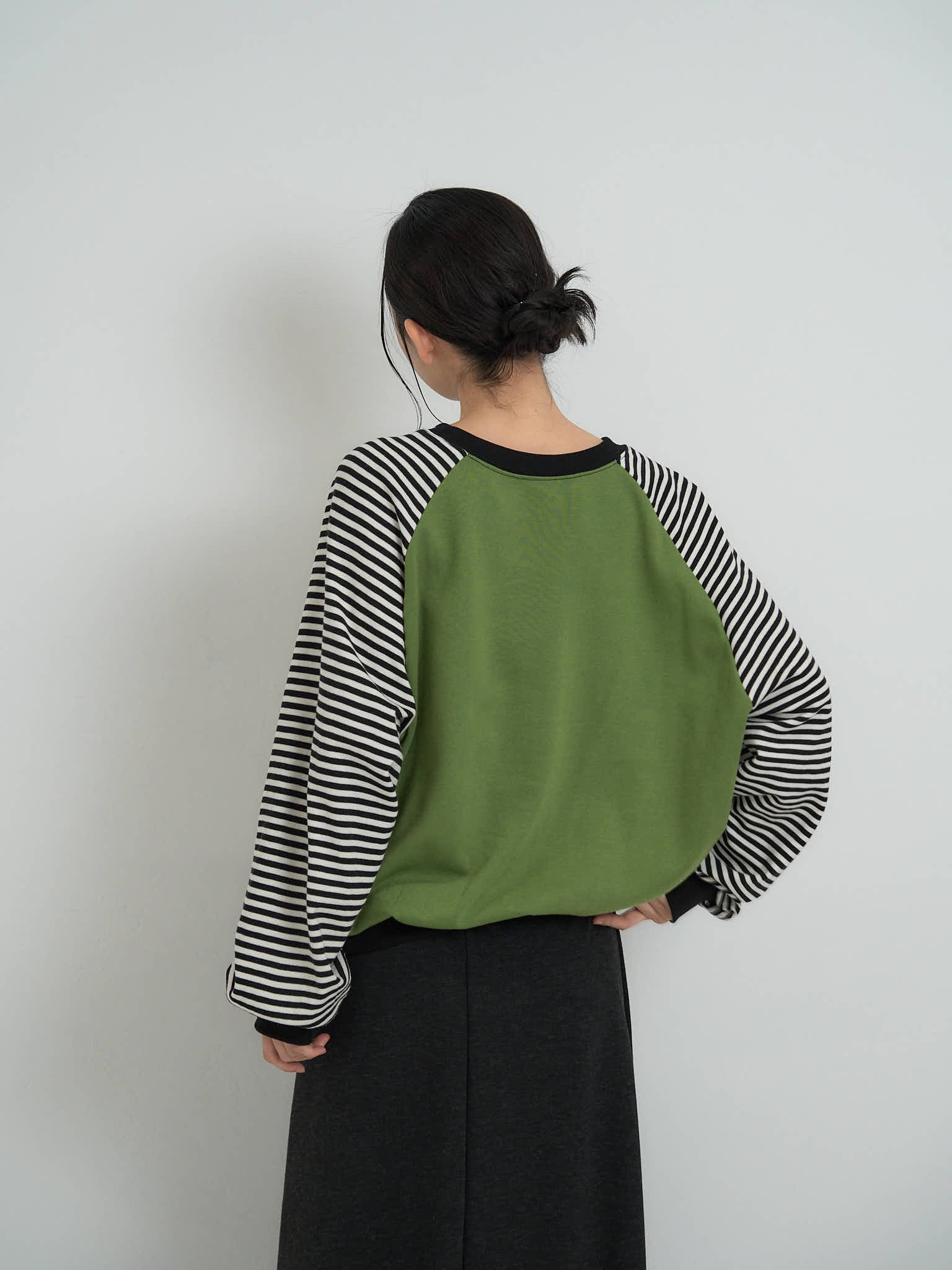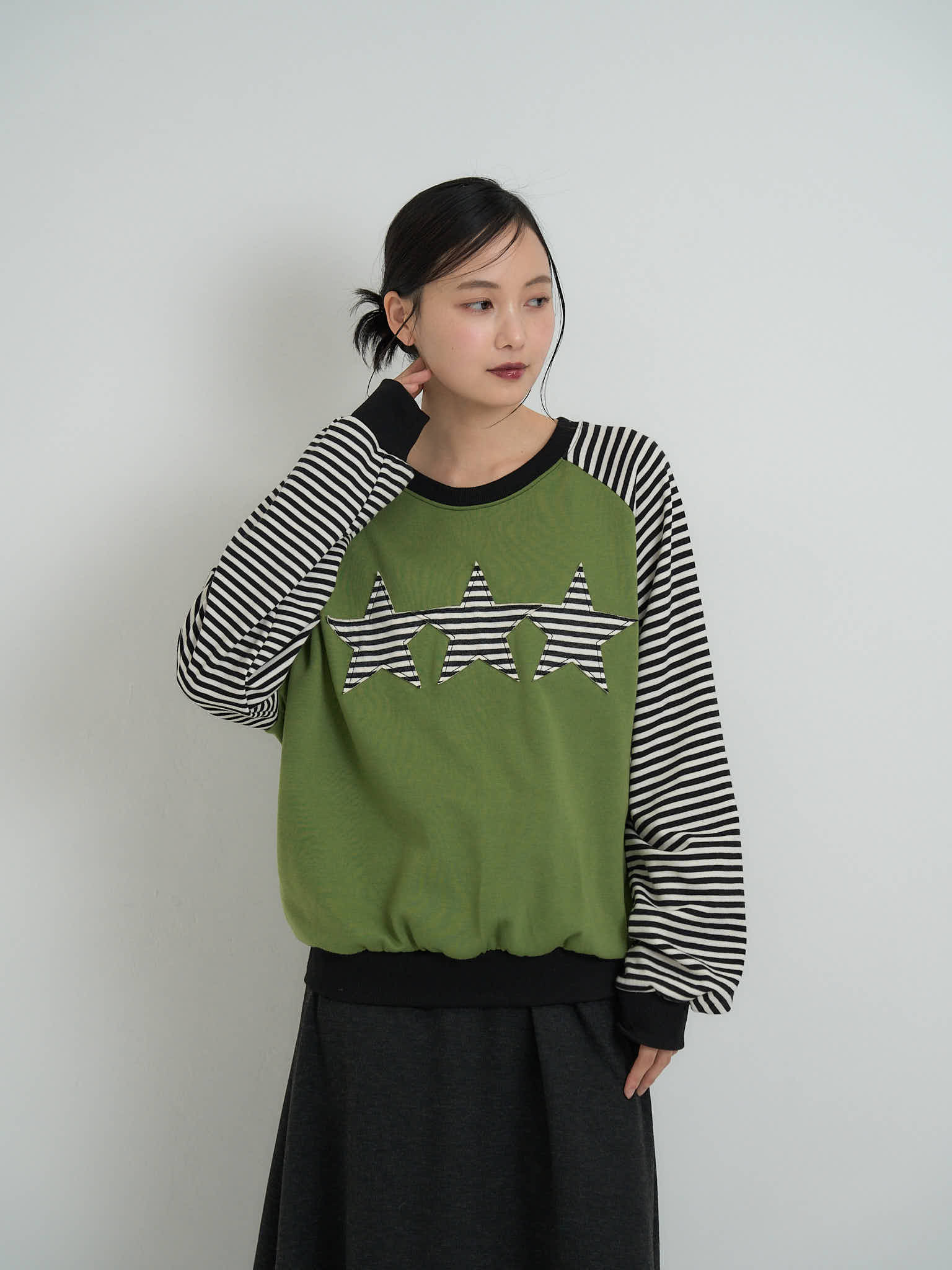 袖はボーダー柄の切替デザインになっており、