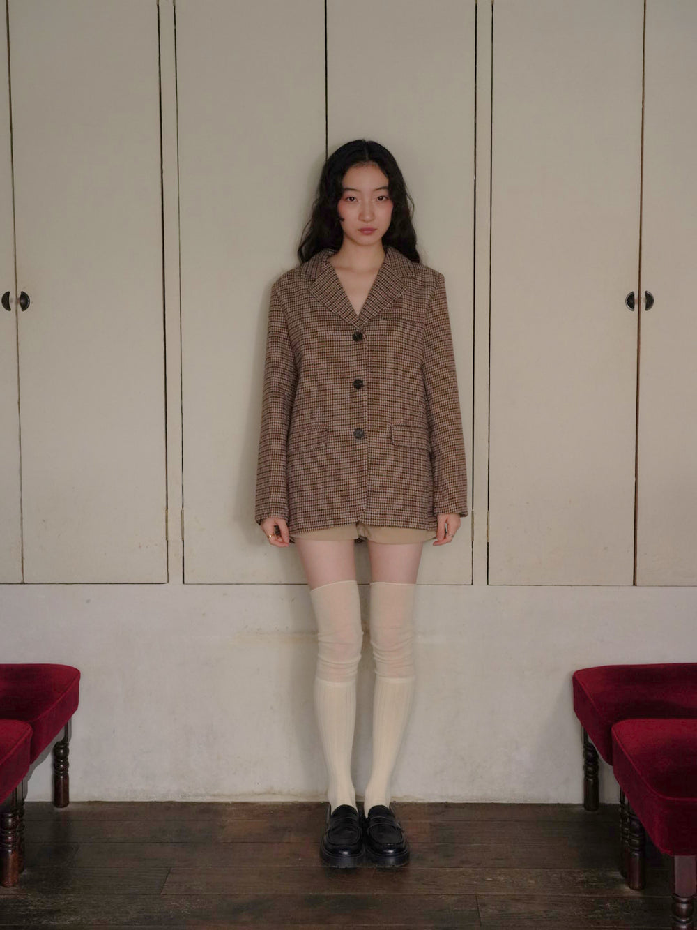 クラシックな千鳥格子柄を、トレンド感のあるオーバーサイズシルエットで仕上げたジャケット。