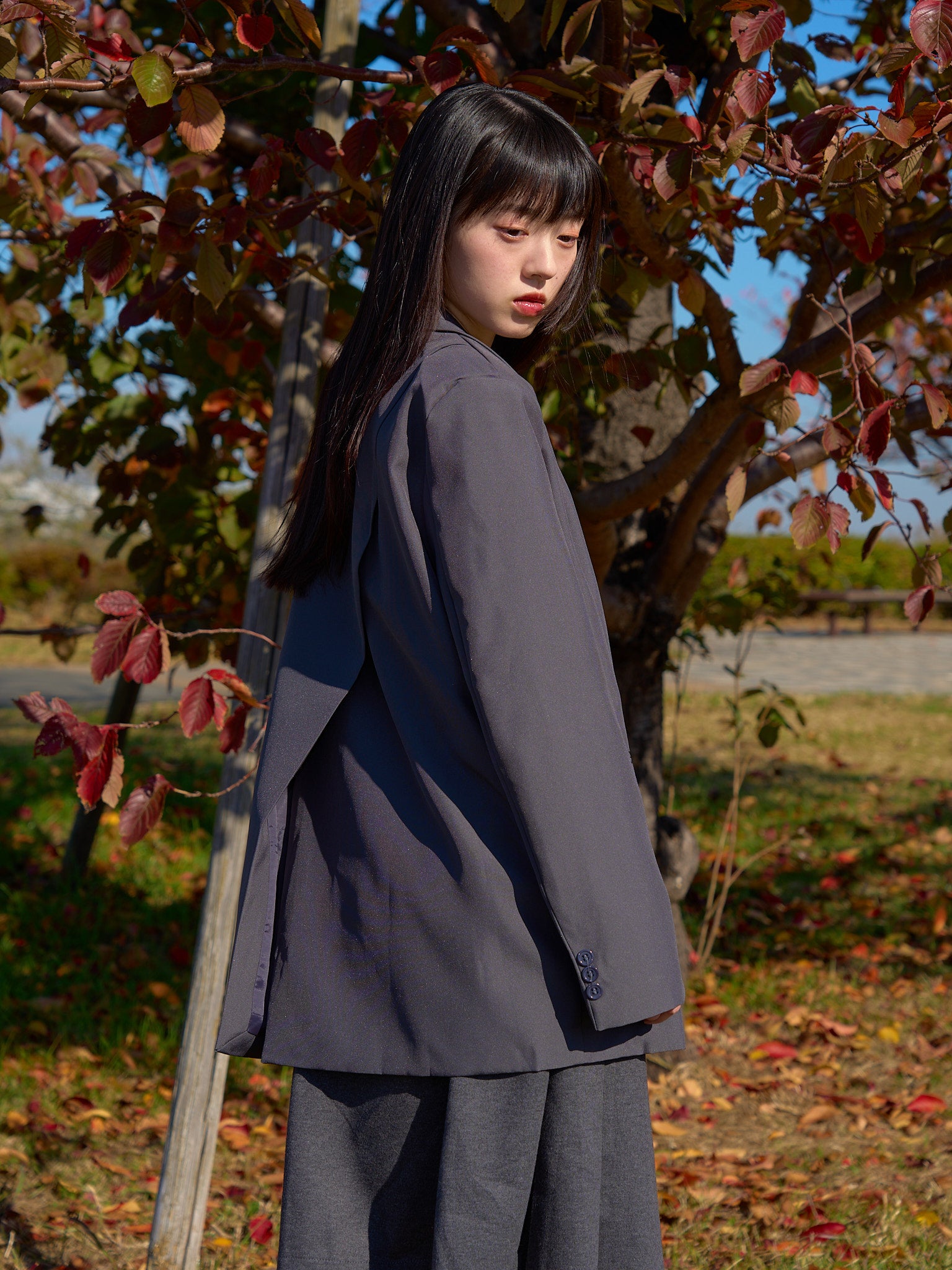diagonal back slit jacket