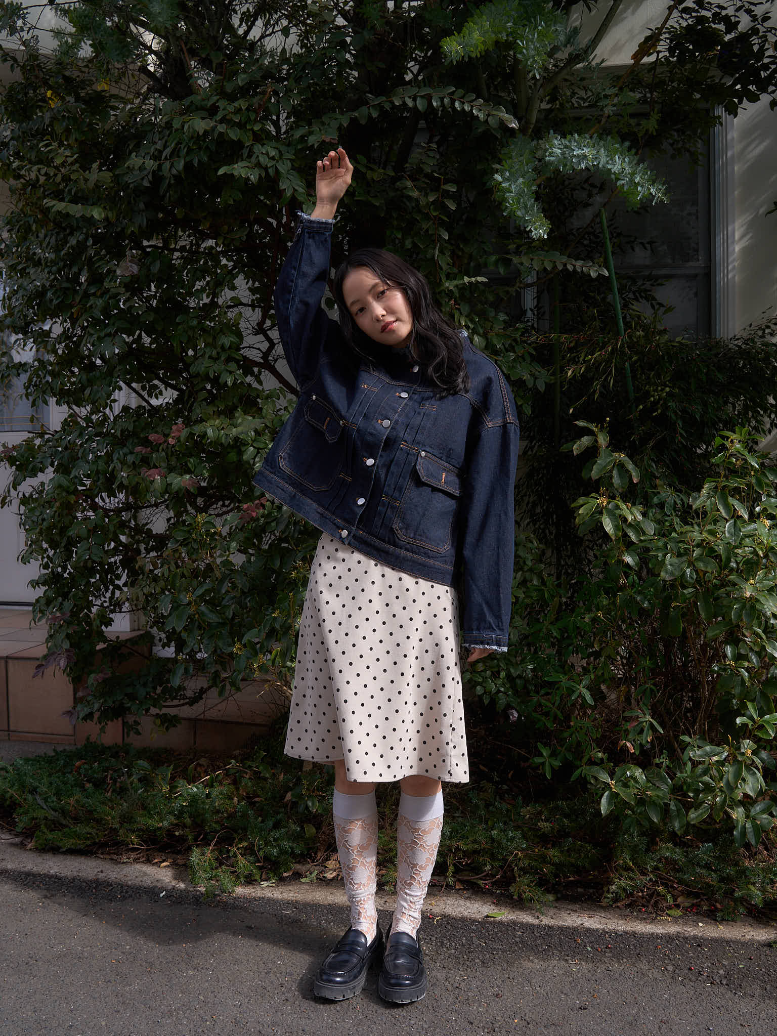 細畝のコーデュロイ生地に小さめドット柄をあしらった