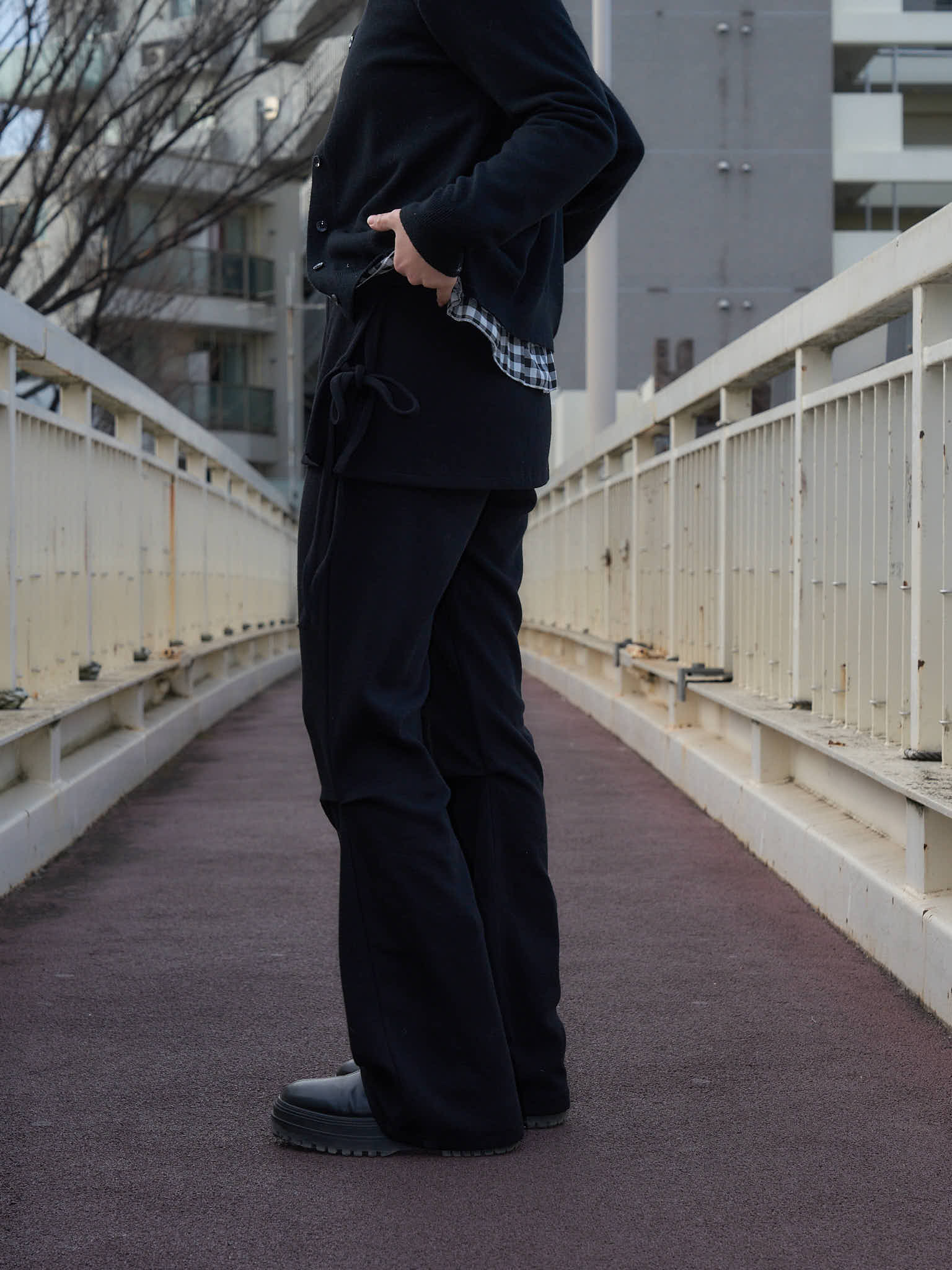 レイヤードフレアパンツ。