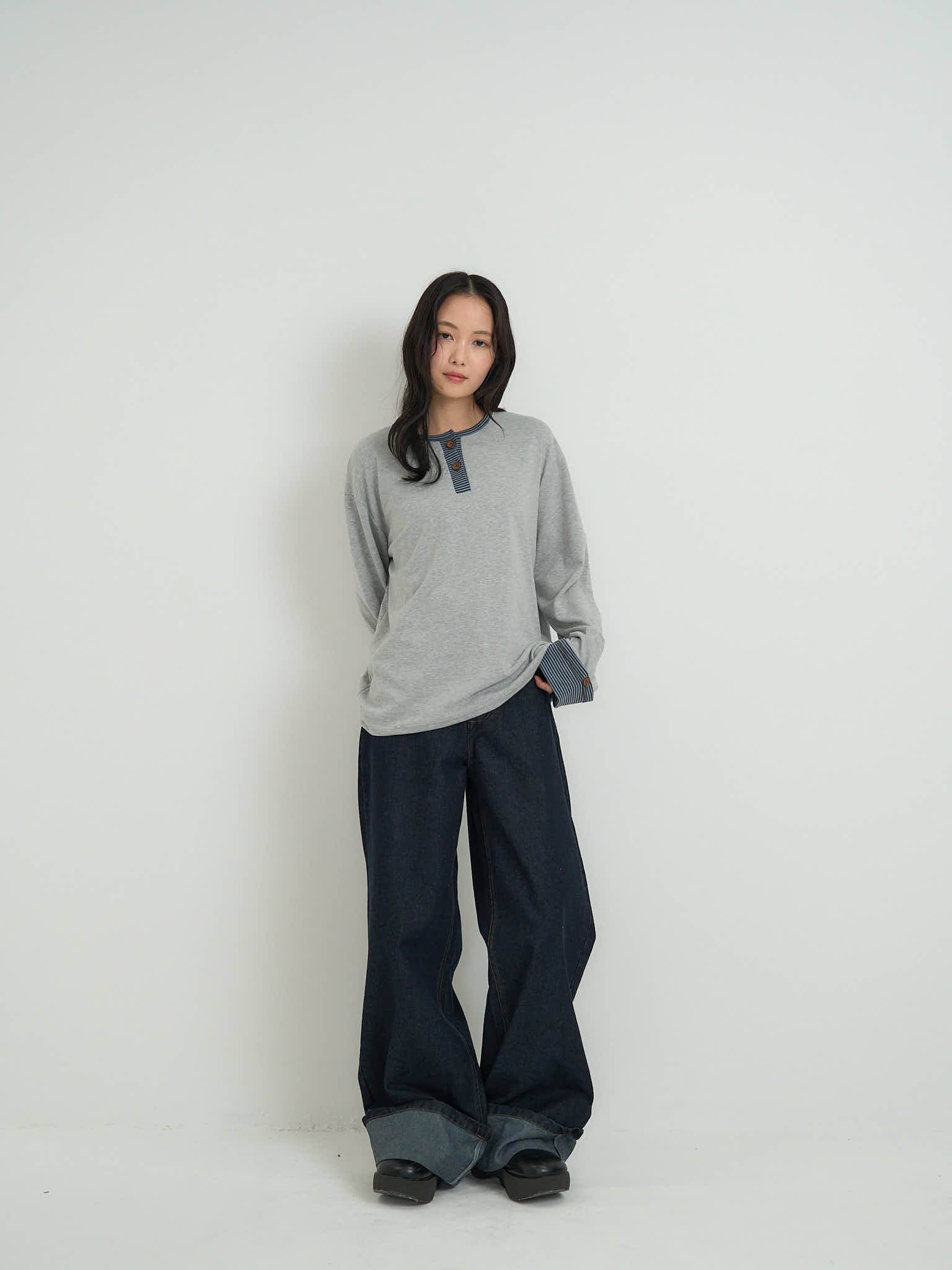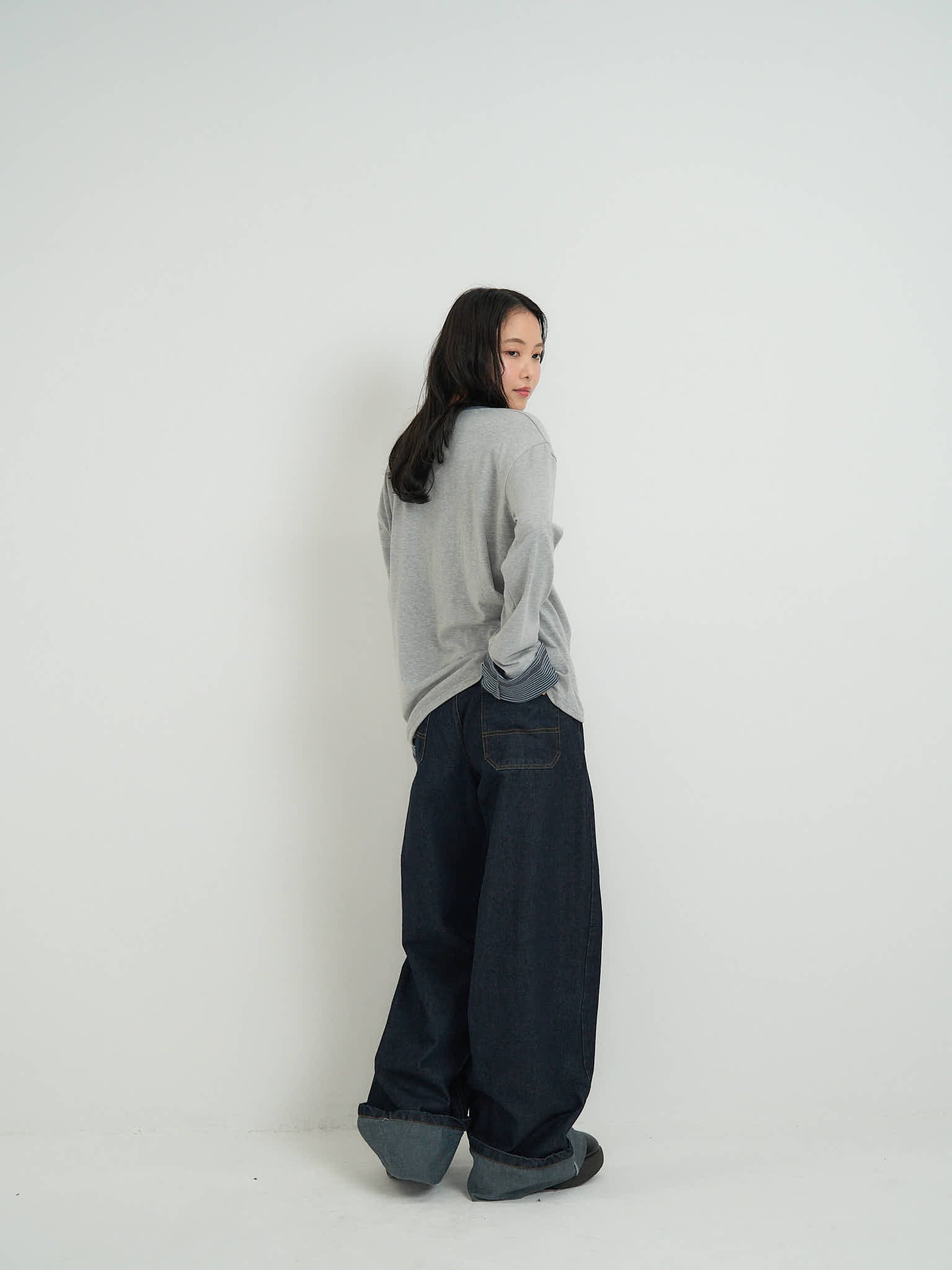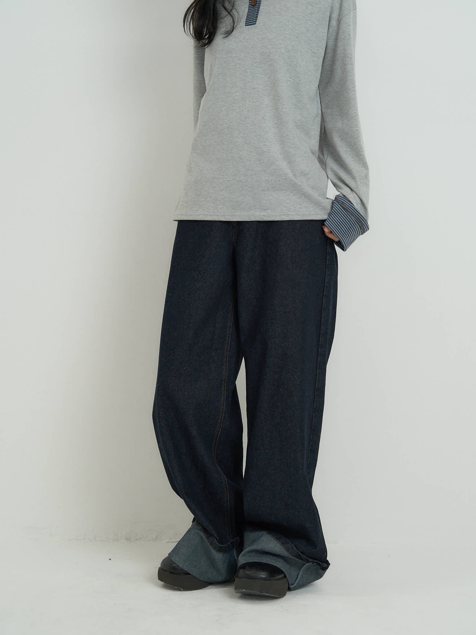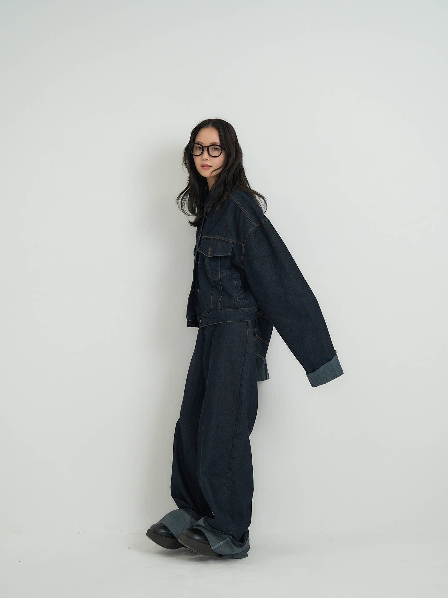 ゆったりとしたワイドシルエットが魅力のデニムパンツ。